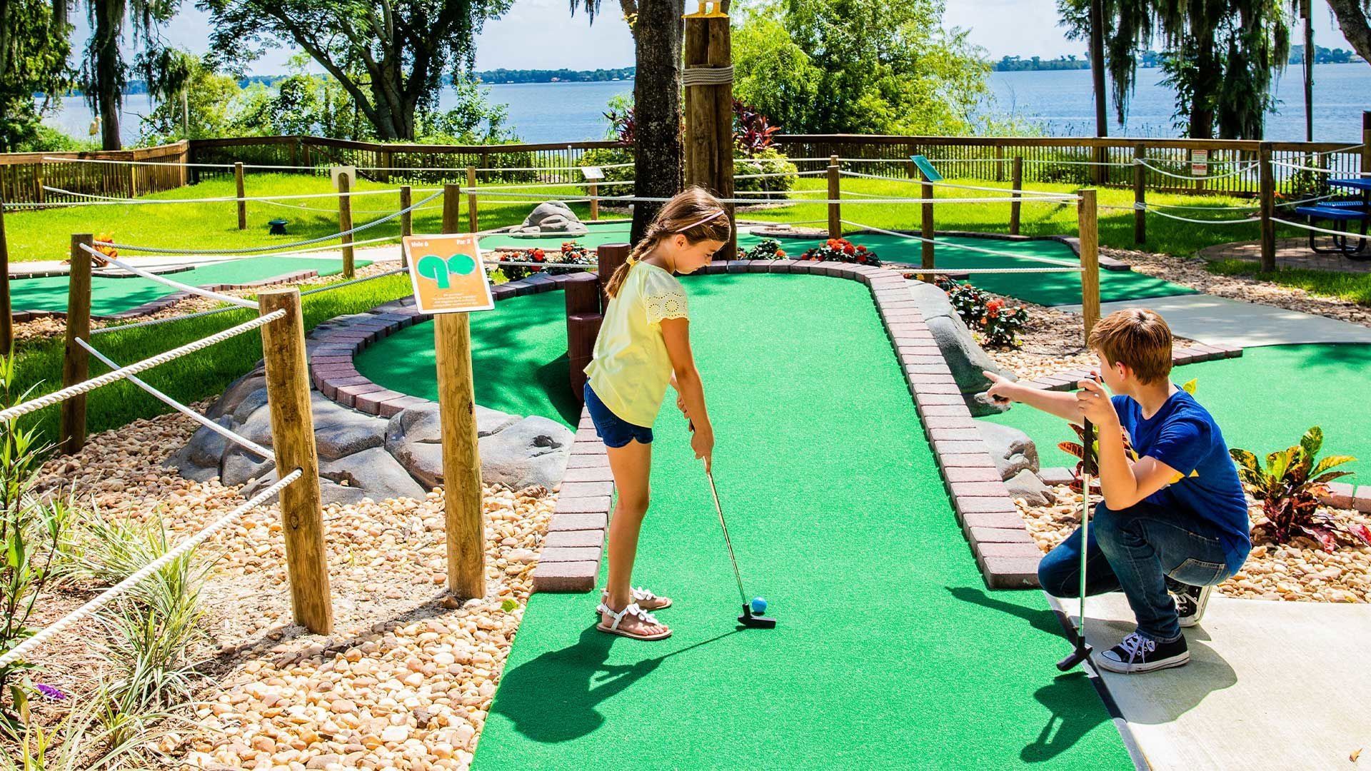 Together, these elements create a memorable and immersive mini golf experience, combining scenic beauty, playful challenges, and family-friendly entertainment that captures the charm of Florida’s outdoor recreation.